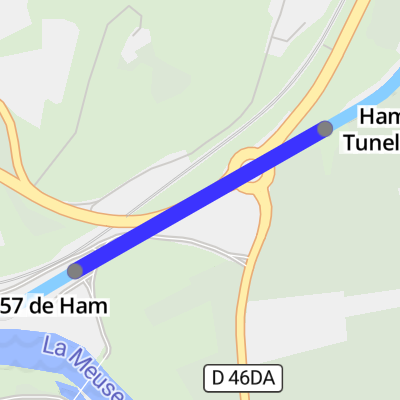 De Kanal leeft am ieweschten Deel gréisstendeels parallel zur Meuse, wärend ... de Kanaltunnel vu Revin, den Tunnel vun Ham-sur-Meuse, e klengen Tunnel bei ... Déi duerno bis op Ham-sur-Meuse sinn all eng ronn 10 Meter méi laang, wat ...