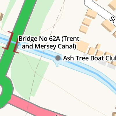 Travel to Great Haywood Junction, then on the Trent and Mersey Canal (Main Line - Great Haywood to Etruria) to Stafford Road Bridge No 93