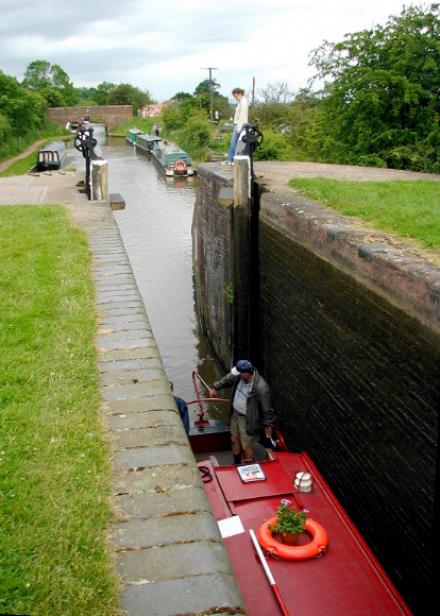 The Tardebigge Top Lock is an impressive 14 feet in depth and completes the 30 locks of the flight. In the background is bridge No.56.