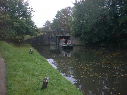 Guilford Princess having just come under the bridge, with the lock just beyond.