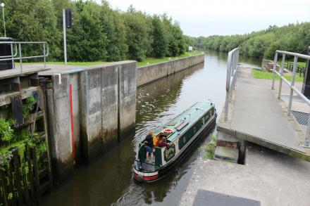 In about 100 metres we'll be joined by the River Aire, and the concrete of the navigation and lock will be replaced by the tree-lined banks of the river.