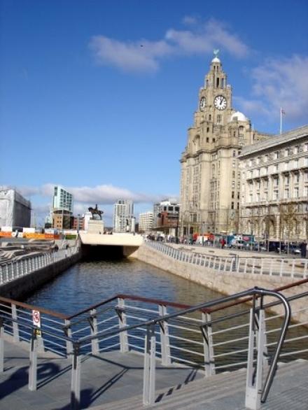 Photo taken in front of the Liver Building at Liverpool Pierhead.