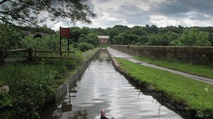 There is a steep path down to the river at this end of the aqueduct