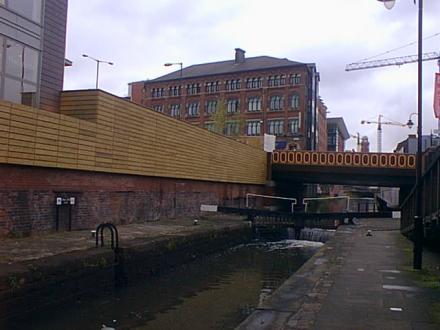 The canal spends much of the 9 locks hemmed in by buildings