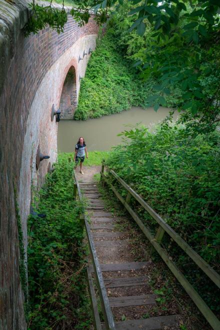 The steps from the road down to the canal towpath