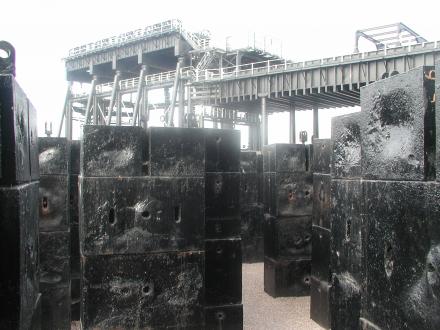 The weights used before restoration are now in the grounds, as a feature of the site.