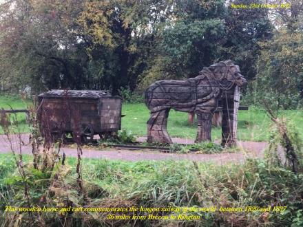 This wooden sculpture commemorates the longest railway in the world between 1820 and 1837. It was 36 miles long from Brecon to Kington.