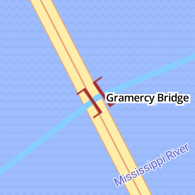 The Gramercy Bridge (officially the Veterans Memorial Bridge), is a cantilever bridge over the Mississippi River connecting Gramercy, Louisiana in St. James Parish with St. John the Baptist Parish. It is the second newest Mississippi River bridge in Louisiana (due to the completion of the John James Audubon Bridge), one of many built to replace the ferry system following a 1976 accident that killed 78 when a ferry sank after being struck by a ship. The bridge and its approaches are Louisiana Highway 3213 (LA 3213), which runs 3.79 miles (6.10 km) from Louisiana Highway 18 on the west bank north over the bridge, past an interchange with Louisiana Highway 44, to its terminus at Louisiana Highway 641. (LA 641 continues north across U.S. Highway 61 (Airline Highway) to Interstate 10.)