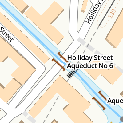 Holliday Street Aqueduct No 6 is a minor waterways place on the Worcester and Birmingham Canal (Birmingham to King's Norton) between Worcester Bar (Junction of Worcester and Birmingham Canal with BCN) (1 furlong to the northwest) and Selly Oak Junction (Former junction with Dudley Canal Line No 2) (2 miles and 7 furlongs to the southwest).