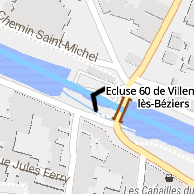 Ecluse 60 de Villeneuve-lès-Béziers is a minor waterways place on the Canal du Midi between Béziers, Port de Plaisance (Halte Nautique de Port Neuf) (5.56 kilometres and 2 locks to the west) and Port Cassafières Marina (A base of Le Boat) (8.60 kilometres and 1 lock to the east).