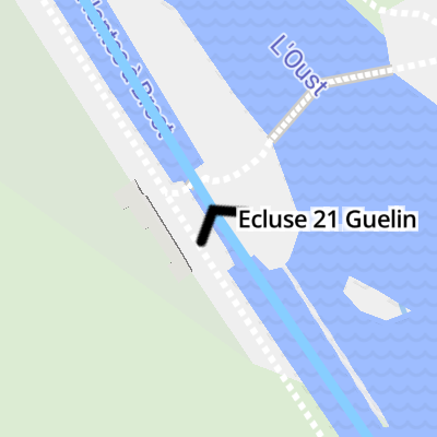 Ecluse 21 Guelin is one of a long flight of locks on the Canal de Nantes à Brest (Est) - Pontivy to Redon and unusually is opened with a crank handle just past the junction with The Monmouthshire and Brecon Canal.