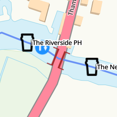 The nearest place in the direction of Kelmscott is The New Inn Hotel (Riverside. Limited mooring for patrons.);