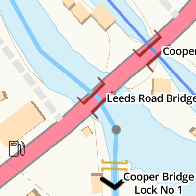 Travel to Cooper Bridge Junction, then on the Calder and Hebble Navigation (Main Line) to Broad Cut Weir Entrance