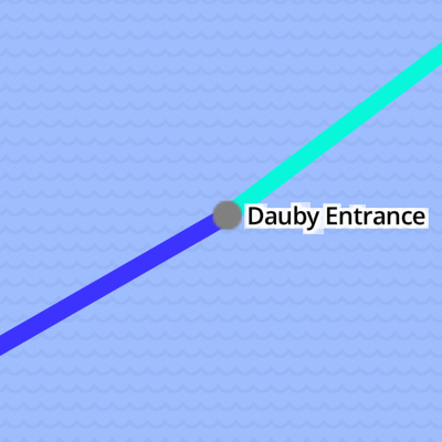 It runs for 0.20 kilometres from Dauby Entrance (where it joins the Jezioro Dauby) to Jeziorak Entrance (where it joins the Jezioro Jeziorak).